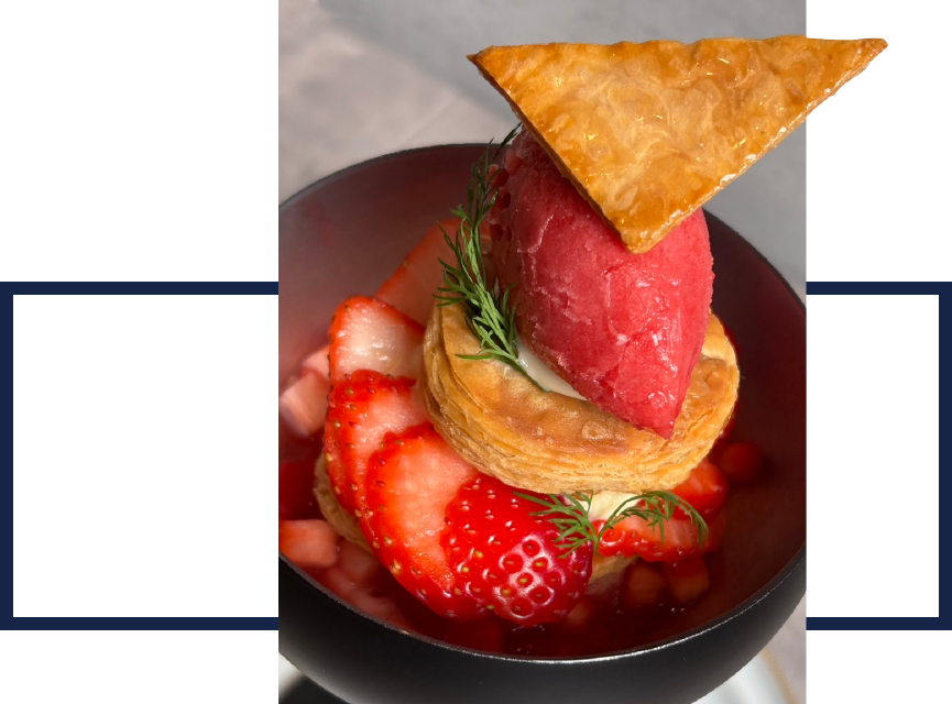 季節の食材をふんだんに使用。旬の果実や素材を活かし、見た目も味わいも季節を感じられる一皿に仕上げます。